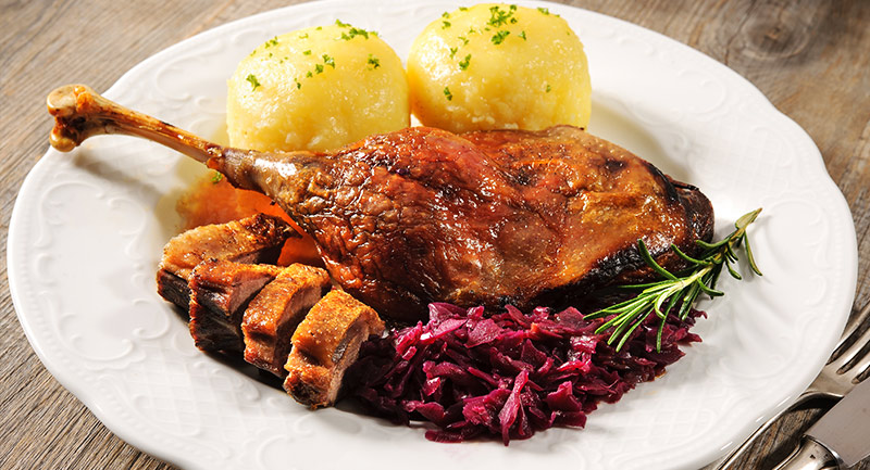 Gänsebraten mit köstlichen Beilagen, für Sie vorbeiretet.