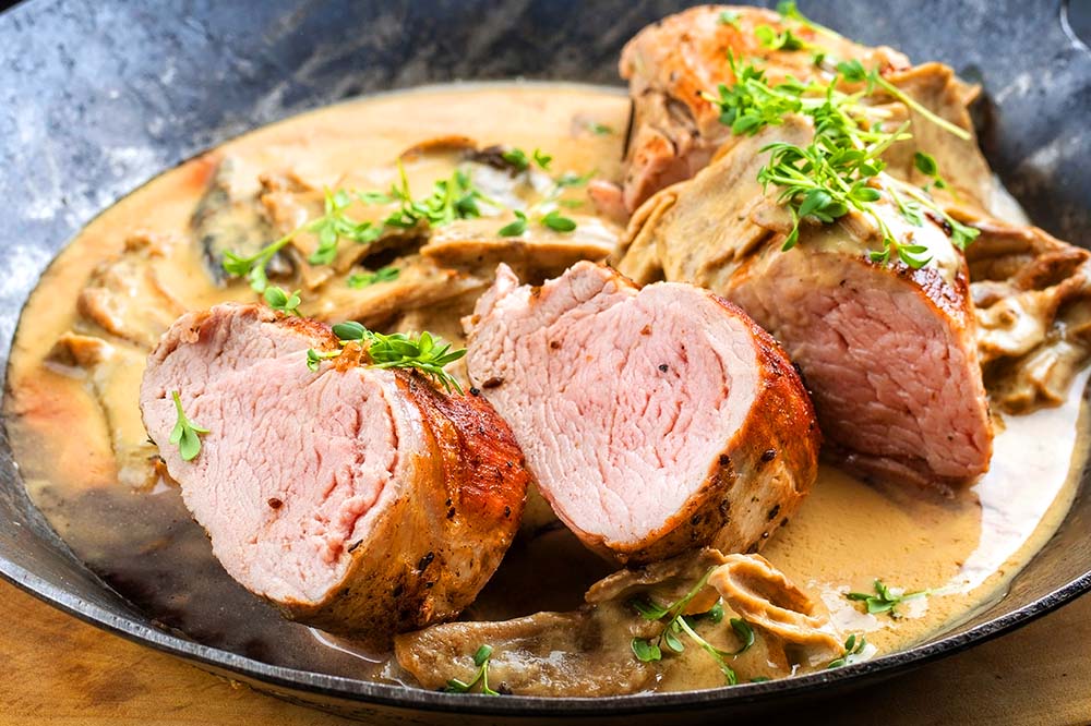 Telefonisch : 02801 9826870 Osterbuffet online Bestellen Rosa Kalbsfilet im Speckmantel